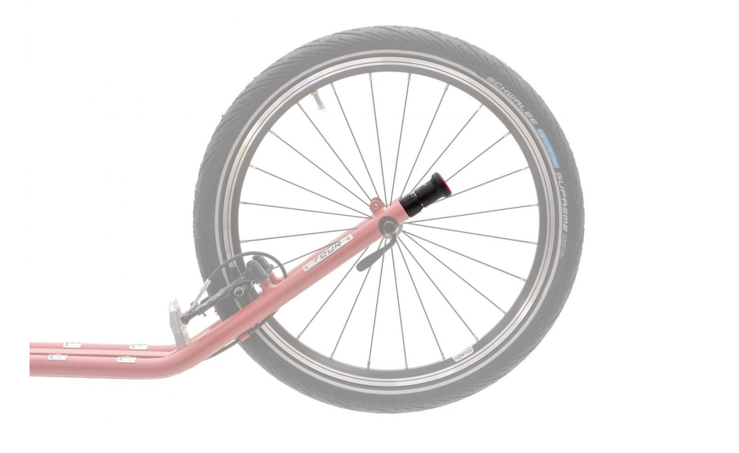 An adapter with a light for quick and easy mounting on the back of the footbike frame is provided. The light can be easily inserted and ejected from the adapter on the back of the frame, making charging or removing the light from the footbike a matter of seconds. The adapter with light follows the rear of the frame, so it does not obstruct during impact and there is no danger of kicking it. The lights can be placed on both sides of the frame, allowing the scooter to be equipped with two lights. If only one light is used, it is recommended to place it on a side facing the center of the road.