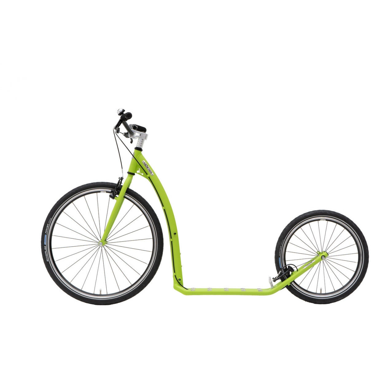 It's a great companion for longer trips, but it won't disappoint you if you're just riding around your neighborhood or in urban areas, whether in the city or its surroundings. This is a comfortable footbike for you free time trips, equipped with inflatable wheels, and it can be used on both asphalt and unpaved roads. It's the best choice for anyone who wants a universal footbike for everyday use, but isn't afraid to take on new challenges. It fits perfect for adults and anyone over 160 cm. This footbike provides great value for money, and its weight capacity is 150 kg.