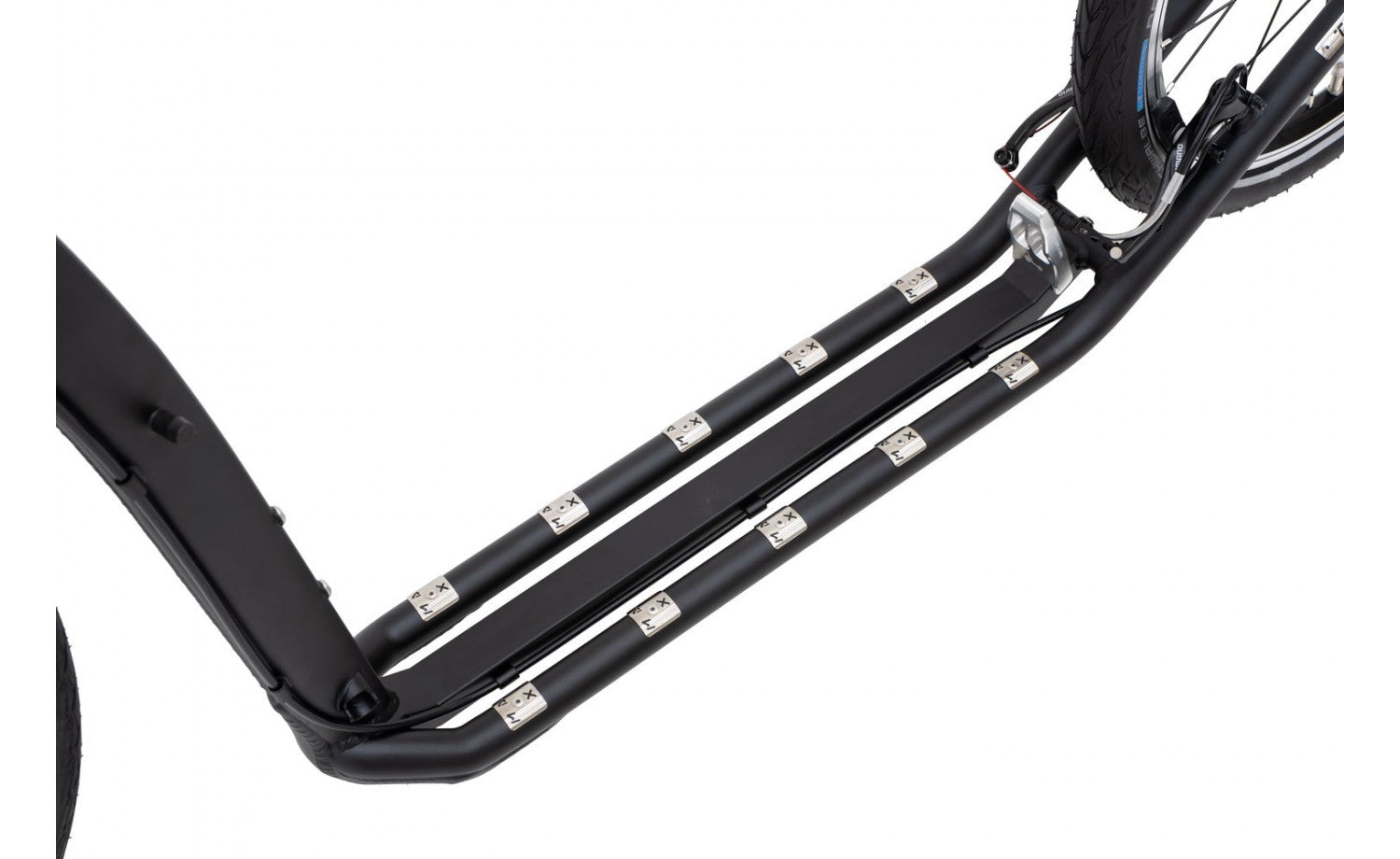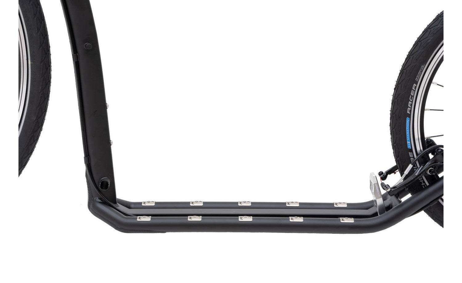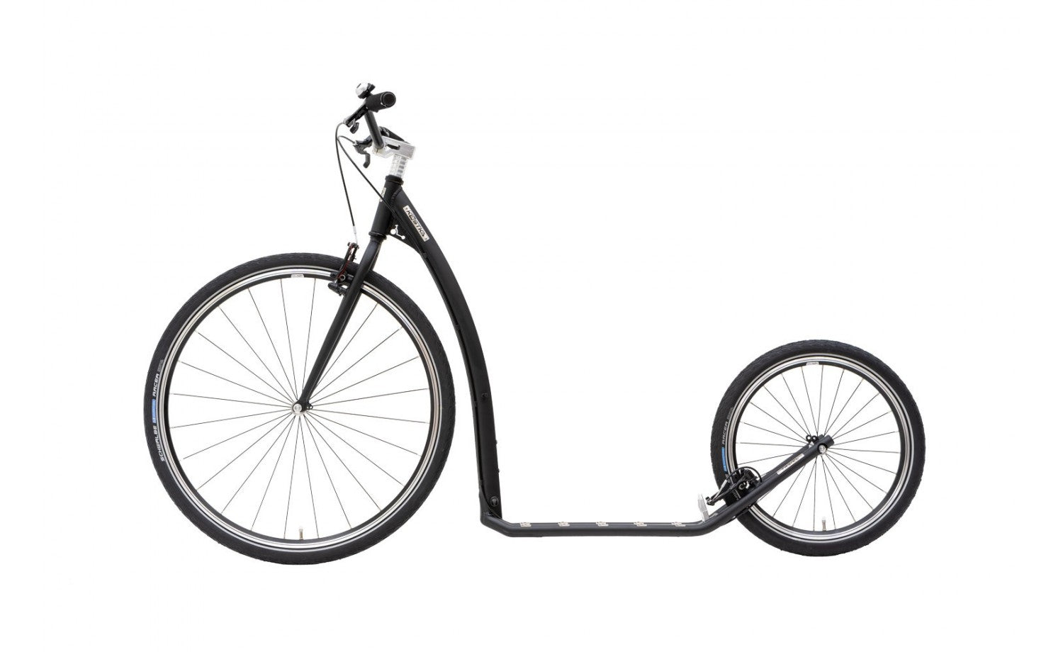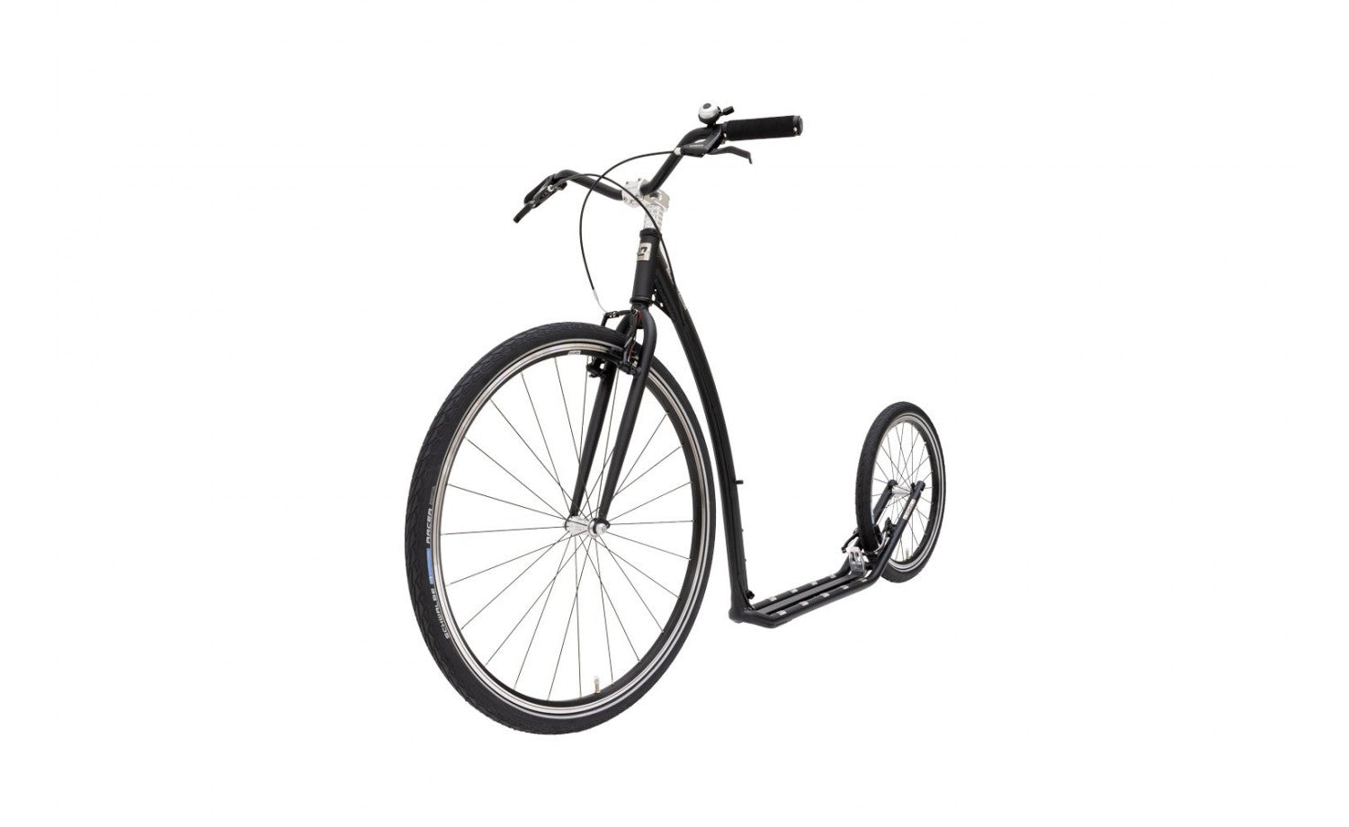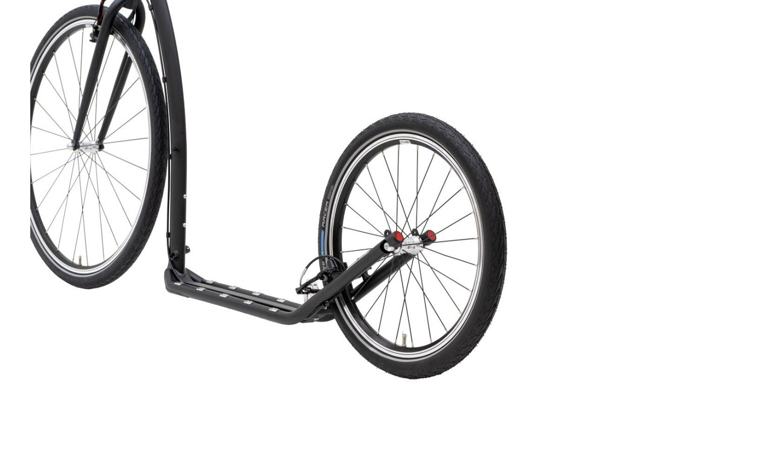 The KOSTKA Travel Max (G6) is an adult footbike with large wheels (28/20) designed for both sports and trips. Its sporty character and 28" front wheel make it an outstanding model, allowing you to easily traverse uneven terrain and maintain your course. You can be sure that you will traverse all kinds of paths effortlessly, including city streets. This comfortable sports footbike with inflatable wheels is suitable for adults above 170 cm (5'7"), and can even accommodate those above 190 cm. With a weight capacity of 150 kg ( 330 lbs), it is the perfect choice for those who don't want to be limited to asphalt rides only.